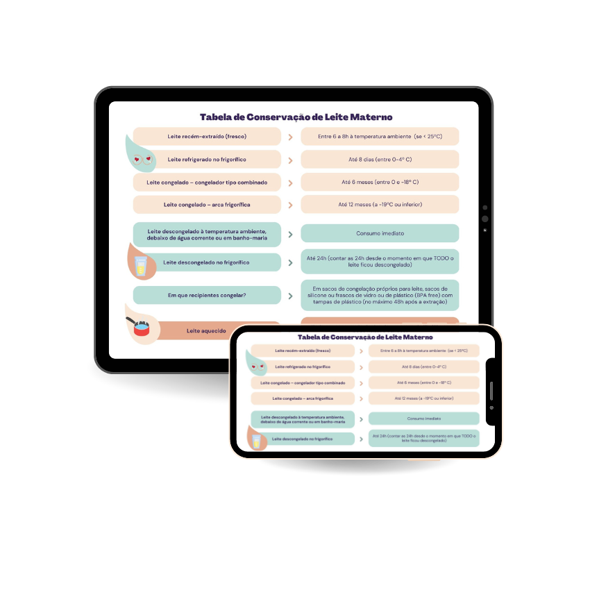 Na Tabela de Conservação do Leite Materno encontras facilmente como preservar o teu leite de forma leve e descomplicada.